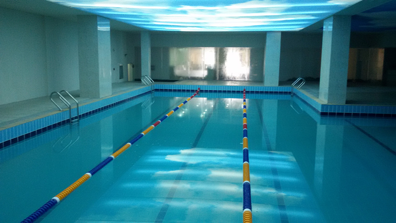 水處理機(jī)房為地下。池水自流到設(shè)備,處理后的清水經(jīng)水泵送到池中。水處理過程中,水泵在主機(jī)的后面。當(dāng)?shù)孛婊蛩娴耐瑢記]有空間設(shè)置機(jī)房時(shí),可作地下機(jī)房系統(tǒng),即地下機(jī)房,但必須滿足機(jī)房地面低于池水面4.5米以上。地下機(jī)房系統(tǒng)的第一個(gè)設(shè)備是流量自動(dòng)調(diào)節(jié)啟閉器(用作停電時(shí)自動(dòng)關(guān)閉和電壓不穩(wěn)時(shí)隨時(shí)自動(dòng)調(diào)節(jié)流量),然后是主機(jī)、曝氣平衡吸水箱(選用請(qǐng)參照曝氣平衡吸水箱型號(hào)尺寸表)、水泵、換熱器和消毒設(shè)備。同時(shí)機(jī)房?jī)?nèi)需要設(shè)置集水坑和排污泵(排污量不宜過小)。此系統(tǒng)設(shè)備多于地上機(jī)房系統(tǒng),投資也高于地上機(jī)房系統(tǒng),地下機(jī)房陰暗潮濕介紹,游泳池水處理設(shè)備工作原理介紹通風(fēng)、排水不如地上機(jī)房系統(tǒng)方便。
